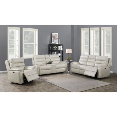 Contemporary styling in a modern ivory leather application, the Duval power sofa features both a power footrest and articulating power headrest for the ultimate in comfortable seating. A horizontal channeled back, and top-grain leather adds a luxurious touch that is durable, comfortable and beautiful.