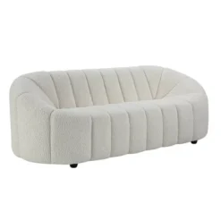 Adair Mid Century Modern Loveseat With Armrest Pockets Tufted Linen Fabric Light Gray – Mellow